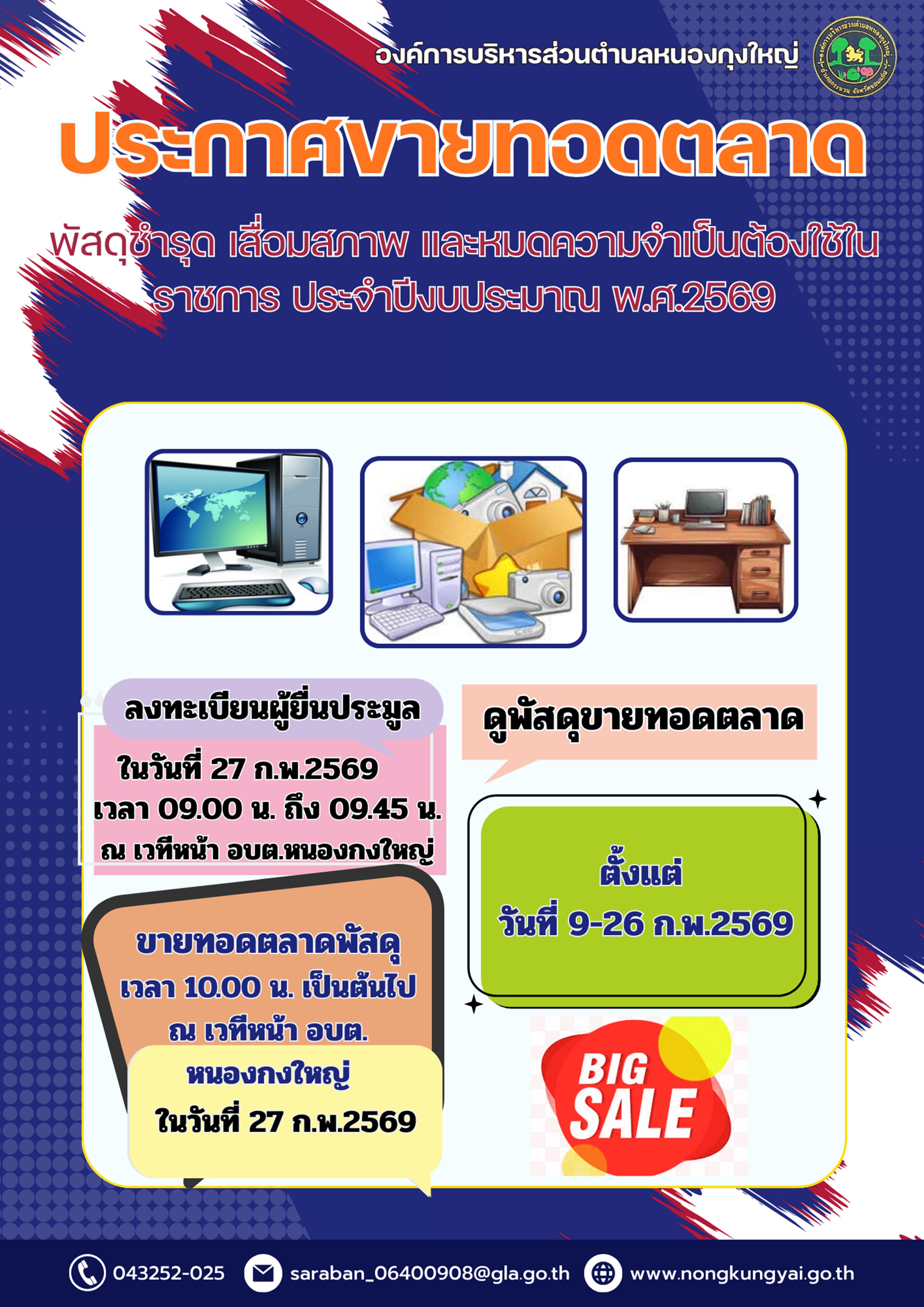 ประมูลขายทอดตลาดพัสดุ ชำรุด เสื่อมสภาพ และไม่จำเป็นต้องใช้ในราชการ ประจำปีงบประมาณ พ.ศ.2569